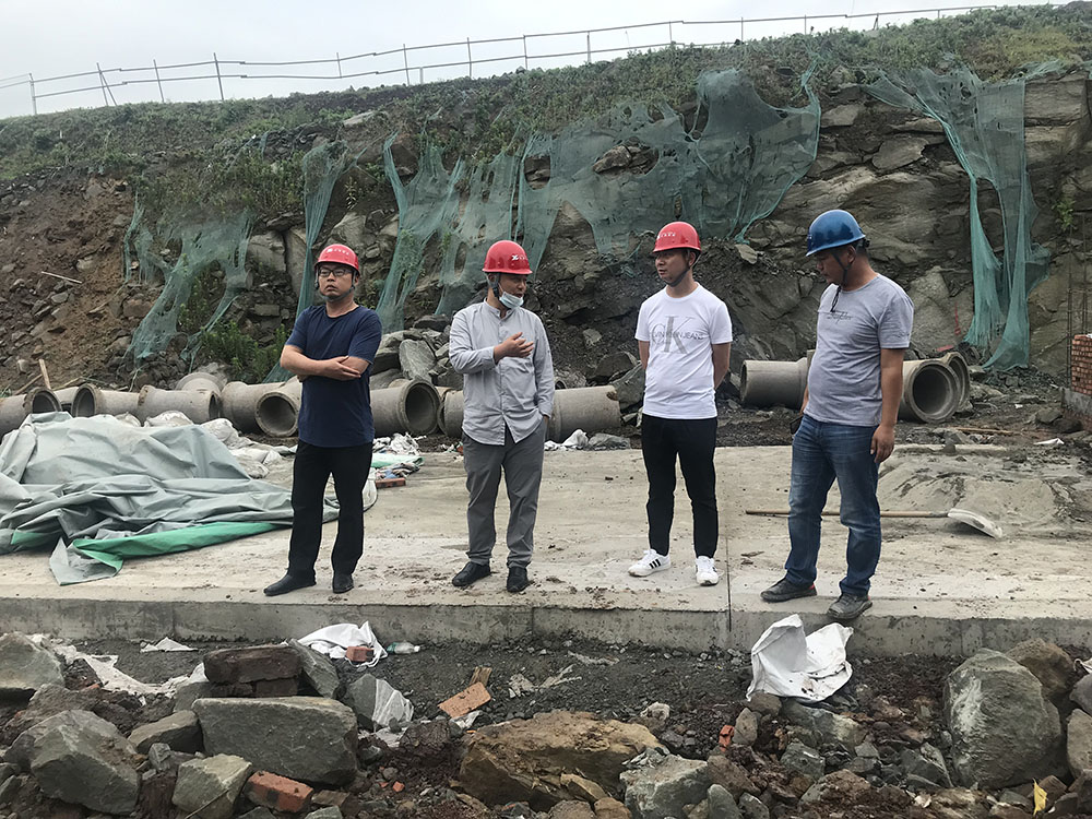 5月22日,城投集团副总经理、兴绿园林公司董事长黄修华率队对党校项目开展安全环保综合督查和汛期安全检查,兴绿园林公司总经理冷亚丽、总工程师吴永红及相关负责人陪同检查。