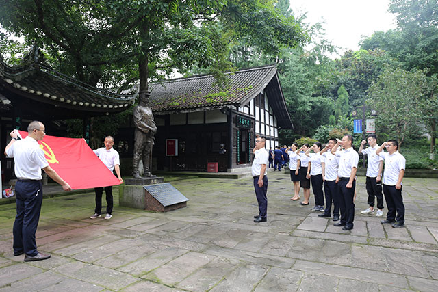 活动首先参观了朱德旧居陈列馆,聆听了朱德在泸州期间战斗、生活介绍,深入了解了伟人朱德在泸州革命的丰功伟绩和生平事迹。在朱德铜像前,支部书记黄修华同志带领下,预备党员余洪波同志举行了入党宣誓仪式,全体党员、预备党员重温了入党誓词。