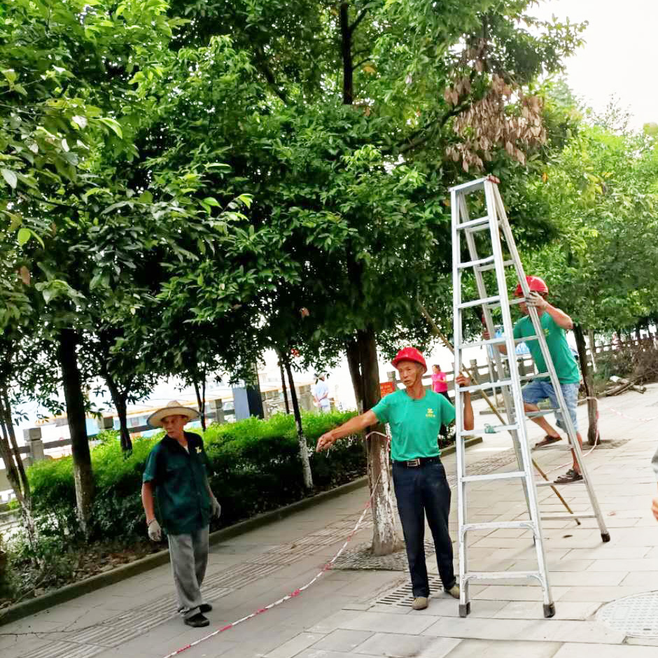 8月17日,兴绿园林公司董事长黄修华、总经理冷亚丽带队,全面梳理排查下属在建项目、维护点位、苗圃基地等区域防洪防汛防灾排险除患,提前转移洪峰水位线下储存物资,清点公司应急救援物资。加固长、沱两江管护范围内的古树名木支撑,对原有公共设施、树木支撑进行清理,确保植物“安全过汛”。