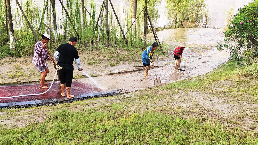 面对超20年一遇的洪水险情,兴绿园林公司严格按照城投集团安排,坚守防洪第一线,坚持值班值守,在临江绿地筑牢绿色“防洪”堤坝。