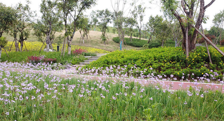 兴绿园林公司按照海绵城市建设要求,将海绵城市建设作为一项长期发展规划融入到园林绿化建设过程中,积极推广践行海绵城市设计及建设。2021年,兴绿园林公司实施的龙涧溪公园(高铁站片区段)工程项目,将水生态治理和场地内海绵系统建设相结合,利用原有的水系、山体以湿塘、雨水湿地、生态浮岛、生态植草沟、植物缓冲带透水铺装及蓄水模块等构建公园内部水系统,结合城市管网灰色基础设施及超标雨水排放系统,利用新材料、微地形改造、植物生态生境,形成渗、滞、蓄、净、用、排的水系循环,大大减轻周边城市管网排水压力。2021年8月投入使用后,被泸州海绵办作为泸州海绵城市公园建设典范,住建部、山西省等省部级单位、省内各地市州单位先后前来参观交流,得到了各界领导的高度认可,市民对海绵城市建设的知晓度、满意度评价也越来越高。